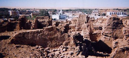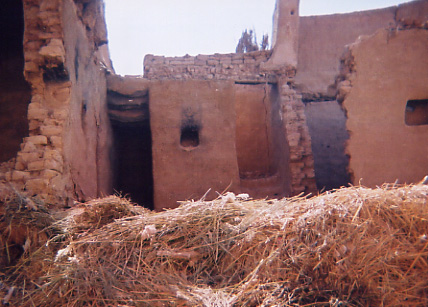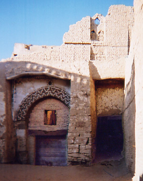 There is an actual village in the Dakhla oasis called, simply, al-Qasr. Its ruins are much more intact and advanced than the others. This photo shows why, in part, with actual wood-carved decoration above some of the doors. There were also some multi-story structures still