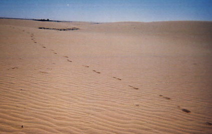 This was taken from the summit of the ruins in Mut, looking out towards the periphery of town. If you look closely, you can see the yellow band of sand just below the horizon. I decided to walk out to these dunes.