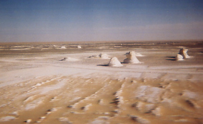 White Desert: Further along the same route, everything goes white. The rocks you see in the foreground are apparently only small examples of the larger, more bizarre shapes that the wind has made.