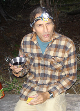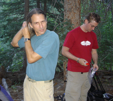 Here Marc is undoubtedly fishing insect repellant out of his gear.